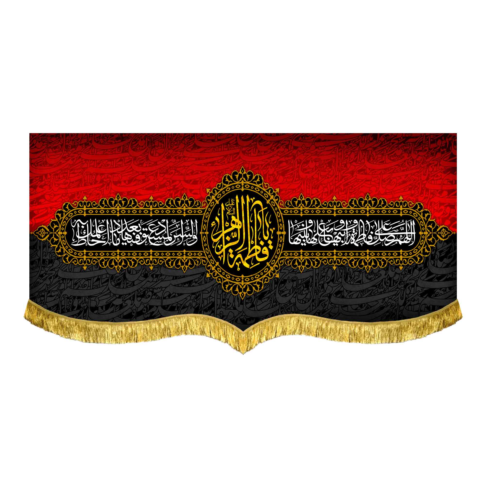 کتیبه ( دکور ) مخمل فاطمیه شهادت حضرت فاطمه زهرا (س) با ذکر السلام علیک یا فاطمه الزهرا (س) به همراه صلوات حضرت زهرا (س) در ابعاد مختلف قابل سفارش است. استفاده شده از پارچه مخمل درجه یک قابل شستشو و با بهترین کیفیت چاپ که همراه با دور دوزی ، ریشه دوزی و بندینک آویز می باشد. این محصول از طراحی تا چاپ به طور کامل در انتشارات مشهور به تولید رسیده است.
