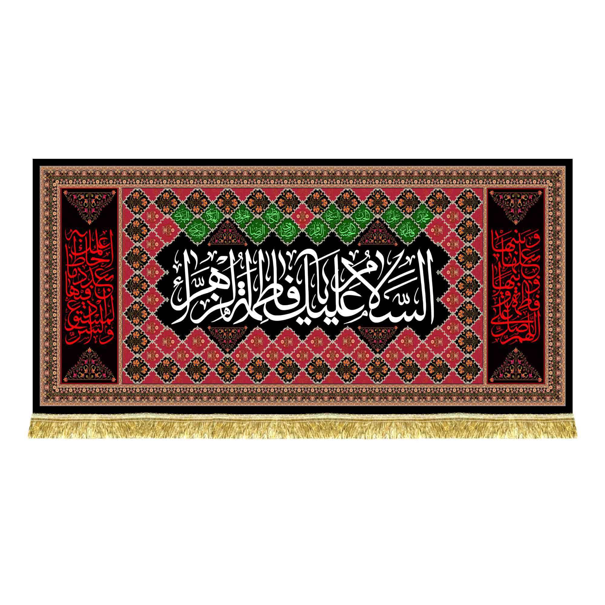 کتیبه ( دکور ) پشت منبری مخمل فاطمیه شهادت حضرت فاطمه زهرا (س) با ذکر السلام علیک یا فاطمه الزهرا (س) به همراه اسامی مبارک چهارده معصوم (ع) ، صلوات حضرت زهرا (س) که با طراحی جدید مناسب مجالس عزاداری فاطمیه و شهادت حضرت زهرا (س) در ابعاد مختلف قابل سفارش است. استفاده شده از پارچه مخمل درجه یک قابل شستشو و با بهترین کیفیت چاپ که همراه با دور دوزی ، ریشه دوزی و بندینک آویز می باشد. این محصول از طراحی تا چاپ به طور کامل در انتشارات مشهور به تولید رسیده است.