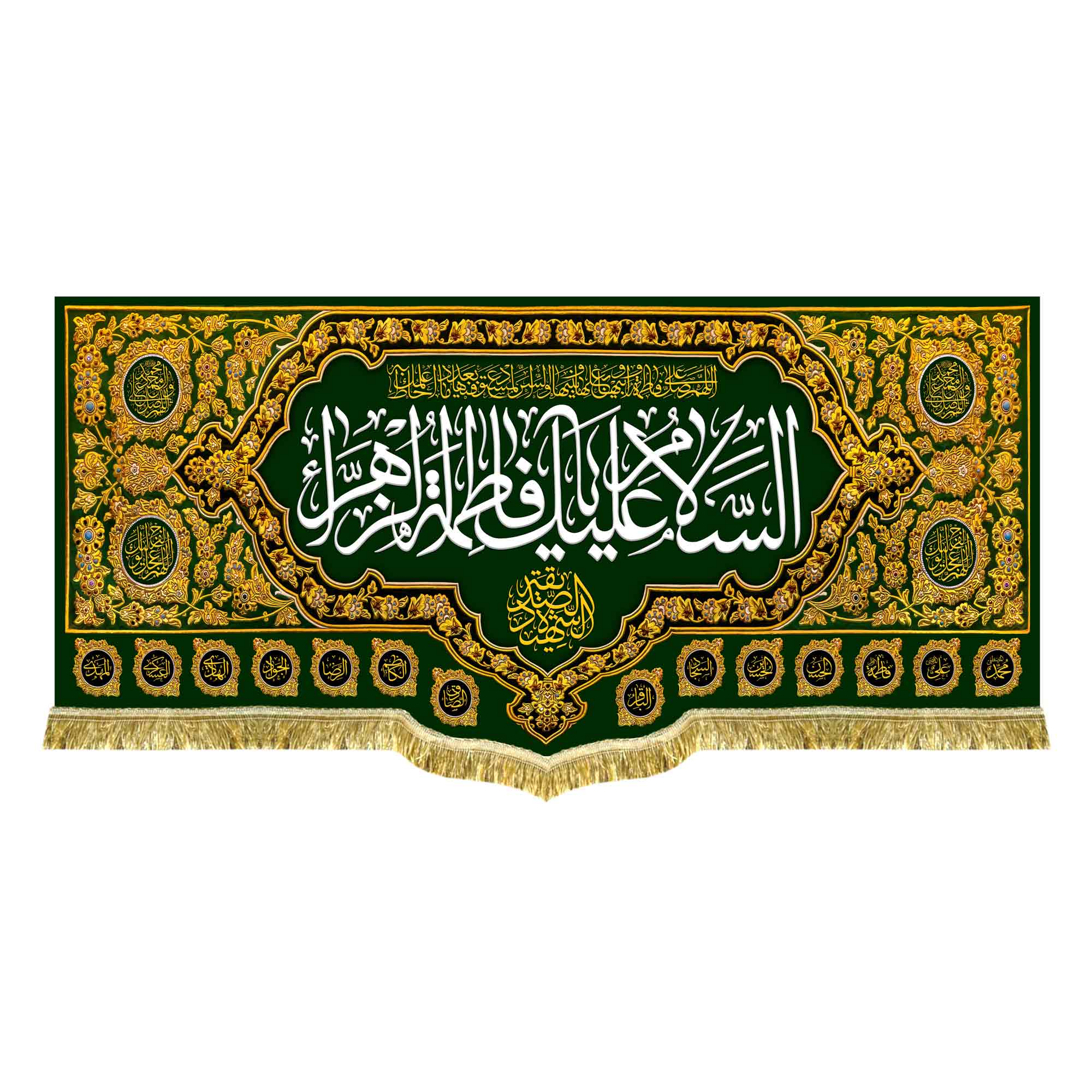 کتیبه ( دکور ) مخمل حضرت فاطمه زهرا (س) با ذکر السلام علیک یا فاطمه الزهرا (س) به همراه اسامی مبارک چهارده معصوم (ع) ، صلوات حضرت زهرا (س) ، اللهم عجل لولیک الفرج ، صدیقه شهیده ، اللهم صل علی محمد و آل محمد و عجل فرجهم که با طراحی جدید در ابعاد مختلف قابل سفارش است. استفاده شده از پارچه مخمل درجه یک قابل شستشو و با بهترین کیفیت چاپ که همراه با دور دوزی ، ریشه دوزی و بندینک آویز می باشد. این محصول از طراحی تا چاپ به طور کامل در انتشارات مشهور به تولید رسیده است.