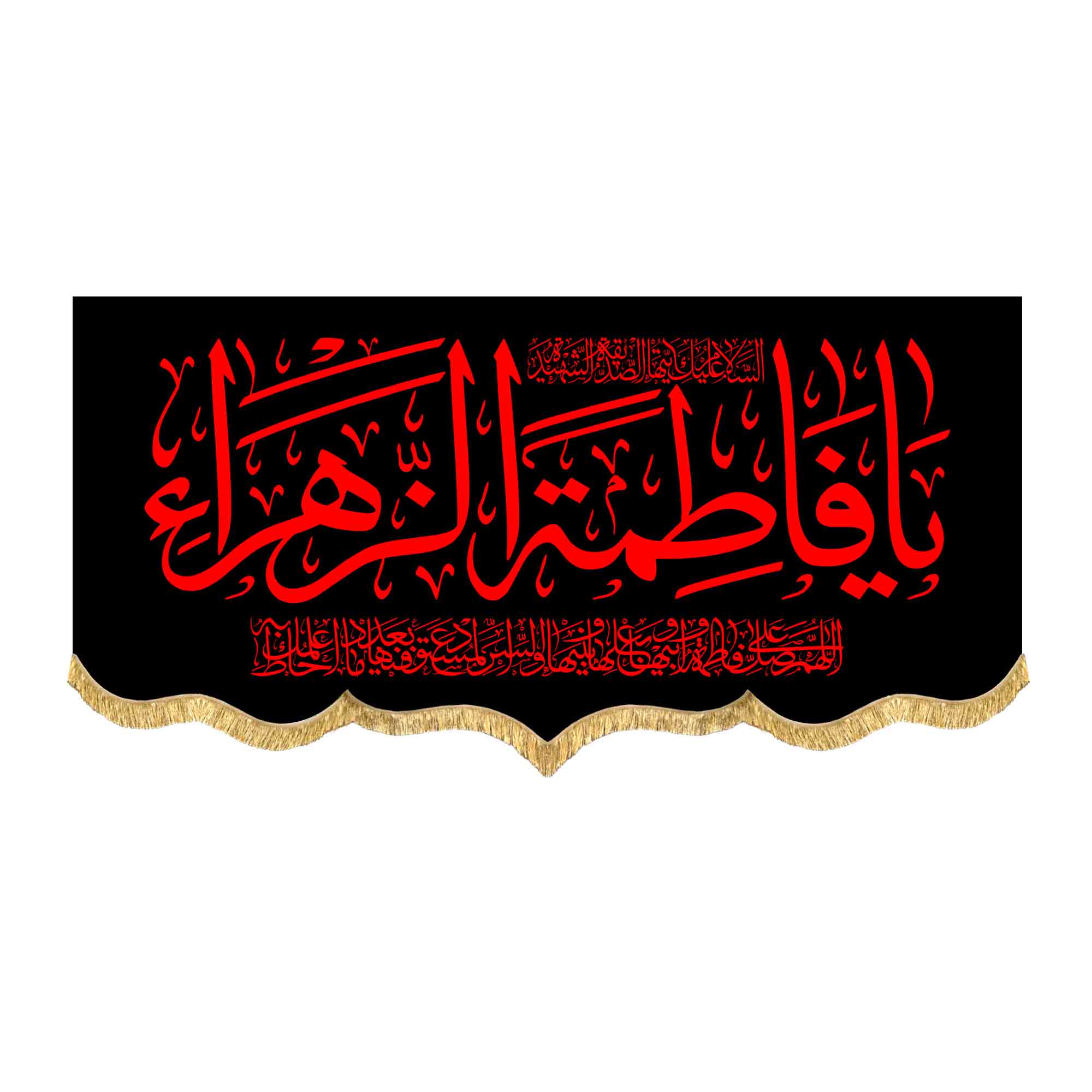 کتیبه ( دکور ) مخمل فاطمیه شهادت حضرت فاطمه زهرا (س) با ذکر السلام علیک یا فاطمه الزهرا (س) به همراه صلوات حضرت زهرا (س) ، السلام علیک ایتها الصدیقه الشهیده که با طراحی جدید مناسب مجالس عزاداری فاطمیه و شهادت حضرت زهرا (س) در ابعاد مختلف قابل سفارش است. استفاده شده از پارچه مخمل درجه یک قابل شستشو و با بهترین کیفیت چاپ که همراه با دور دوزی ، ریشه دوزی و بندینک آویز می باشد. این محصول از طراحی تا چاپ به طور کامل در انتشارات مشهور به تولید رسیده است.