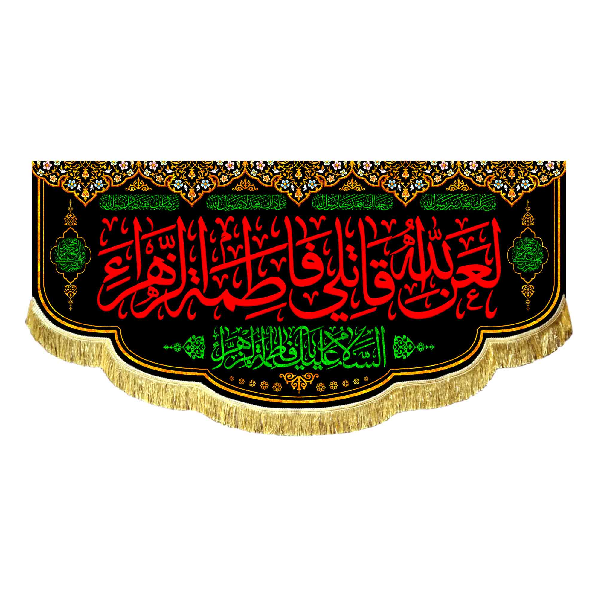 کتیبه ( دکور ) مخمل فاطمیه شهادت حضرت فاطمه زهرا (س) لعن الله قاتلی فاطمه زهرا (س) به همراه السلام علیک یا فاطمه الزهرا (س) ، صلوات که با طراحی جدید در ابعاد مختلف قابل سفارش است. استفاده شده از پارچه مخمل درجه یک قابل شستشو و با بهترین کیفیت چاپ که همراه با دور دوزی ، ریشه دوزی و بندینک آویز می باشد. این محصول از طراحی تا چاپ به طور کامل در انتشارات مشهور به تولید رسیده است.