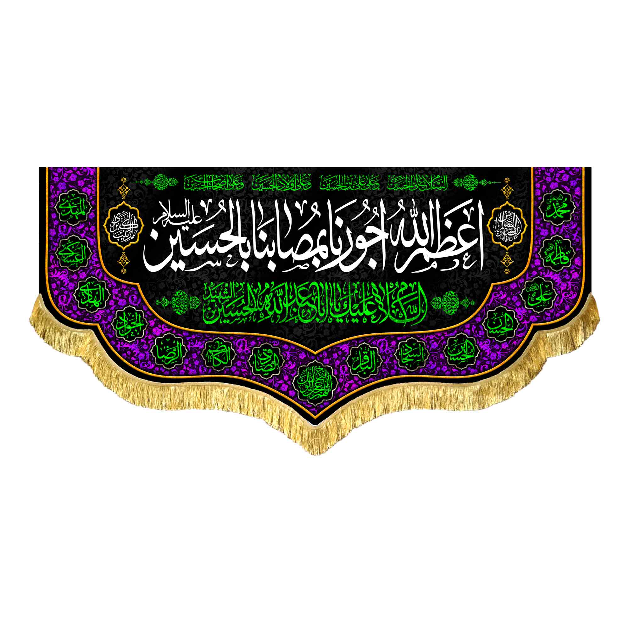 کتیبه ( دکور ) مخمل اعظم الله اجورنا بمصابنا بالحسین ( أعظَمَ اللهُ اجورَنا بمُصابِنا بِالحُسَینِ ) به همراه اسامی مبارک چهارده معصوم (ع) ، السلام علیک یا اباعبدالله الحسین الشهید (ع) ، یا زینب کبری (س) ، یا ابوالفضل العباس (ع) ، اللهم عجل لولیک الفرج ، چهار سلام زیارت عاشورا که با طراحی جدید در ابعاد مختلف قابل سفارش است. استفاده شده از پارچه مخمل درجه یک قابل شستشو و با بهترین کیفیت چاپ که همراه با دور دوزی ، ریشه دوزی و بندینک آویز می باشد. این محصول از طراحی تا چاپ به طور کامل در انتشارات مشهور به تولید رسیده است.