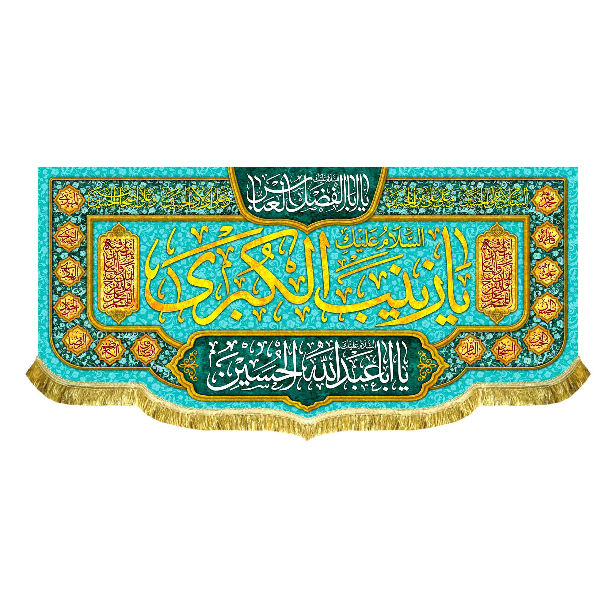 پشت منبری ( کتیبه ) مخمل ولادت حضرت زینب (س) با ذکر السلام علیک یا زینب کبری (س) به همراه اسامی مبارک چهارده معصوم (ع) ، السلام علیک یا اباعبدالله الحسین (ع) ، السلام علیک یا ابوالفضل العباس (ع) ، اللهم عجل لولیک الفرج ، چهار سلام زیارت عاشورا که با طراحی جدید در ابعاد مختلف قابل سفارش است. استفاده شده از پارچه مخمل درجه یک قابل شستشو و با بهترین کیفیت چاپ که همراه با دور دوزی ، ریشه دوزی و بندینک آویز می باشد. این محصول از طراحی تا چاپ به طور کامل در انتشارات مشهور به تولید رسیده است.