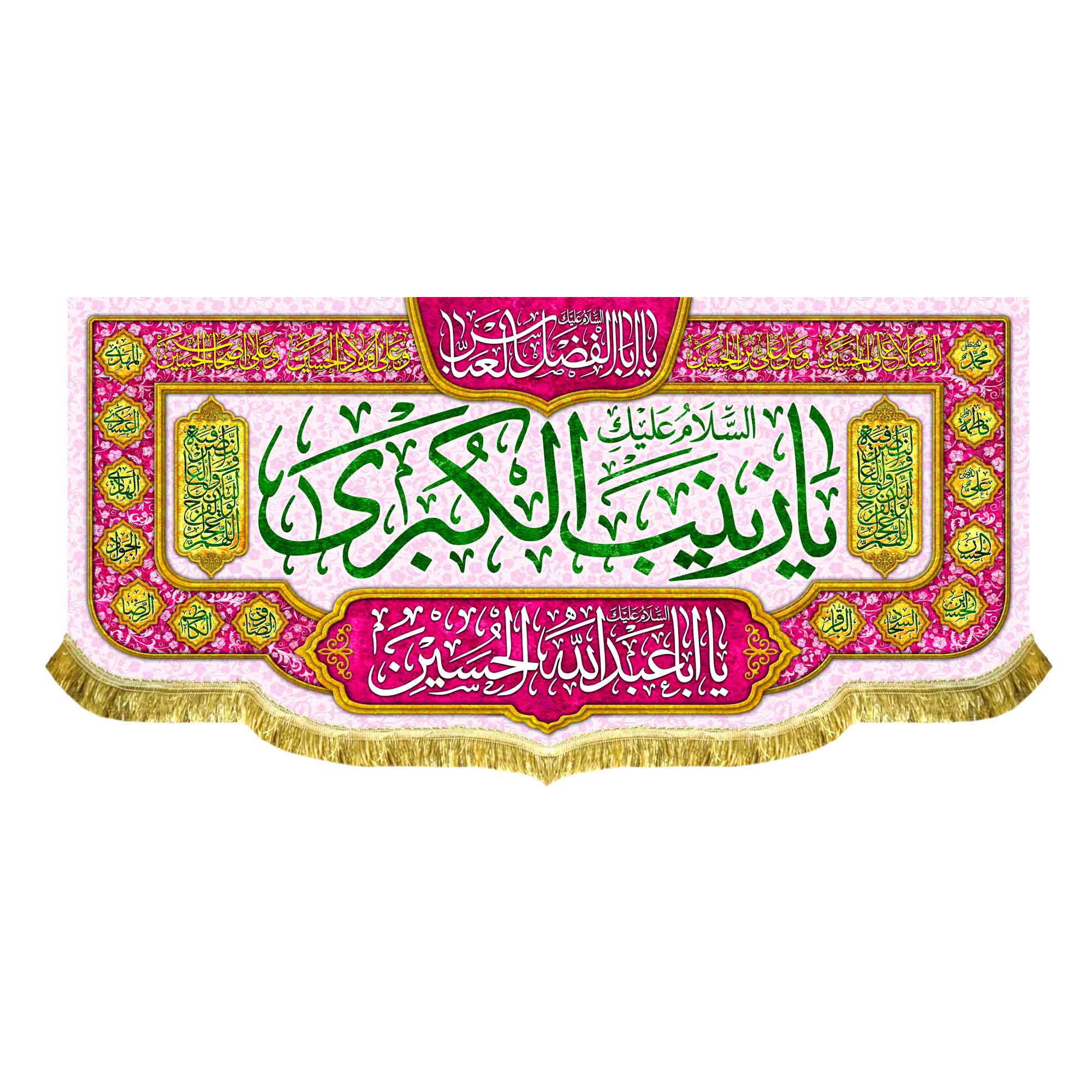 پشت منبری ( کتیبه ) مخمل ولادت حضرت زینب (س) با ذکر السلام علیک یا زینب کبری (س) به همراه اسامی مبارک چهارده معصوم (ع) ، السلام علیک یا اباعبدالله الحسین (ع) ، السلام علیک یا ابوالفضل العباس (ع) ، اللهم عجل لولیک الفرج ، چهار سلام زیارت عاشورا که با طراحی جدید در ابعاد مختلف قابل سفارش است. استفاده شده از پارچه مخمل درجه یک قابل شستشو و با بهترین کیفیت چاپ که همراه با دور دوزی ، ریشه دوزی و بندینک آویز می باشد. این محصول از طراحی تا چاپ به طور کامل در انتشارات مشهور به تولید رسیده است.