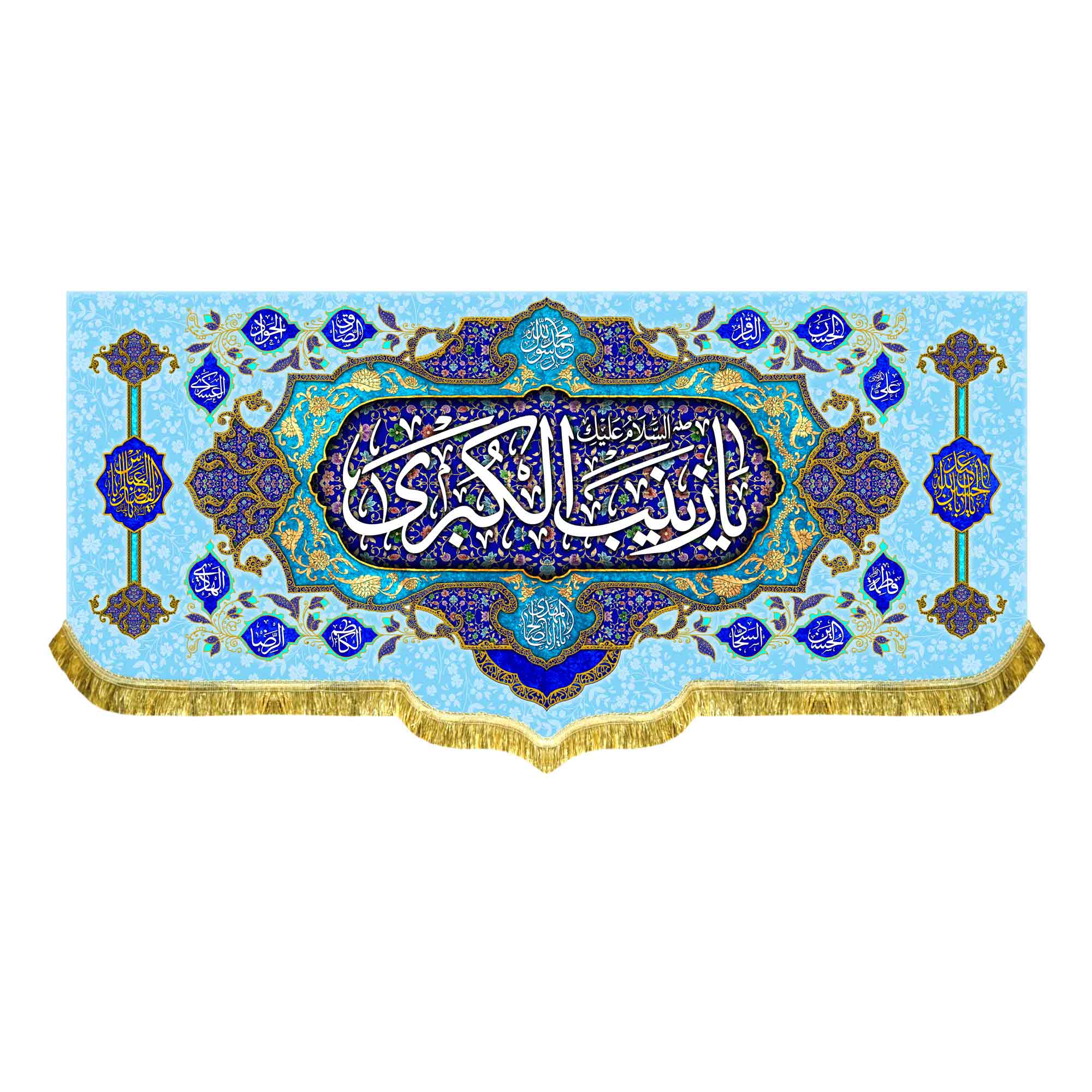 کتیبه ( دکور ) مخمل ولادت حضرت زینب کبری (س) با ذکر السلام علیک یا زینب کبری (س) به همراه اسامی مبارک چهارده معصوم (ع) ، السلام علیک یا اباعبدالله الحسین (ع) ، السلام علیک یا ابوالفضل العباس (ع) که با طراحی جدید در ابعاد مختلف قابل سفارش است. استفاده شده از پارچه مخمل درجه یک قابل شستشو و با بهترین کیفیت چاپ که همراه با دور دوزی ، ریشه دوزی و بندینک آویز می باشد. این محصول از طراحی تا چاپ به طور کامل در انتشارات مشهور به تولید رسیده است.