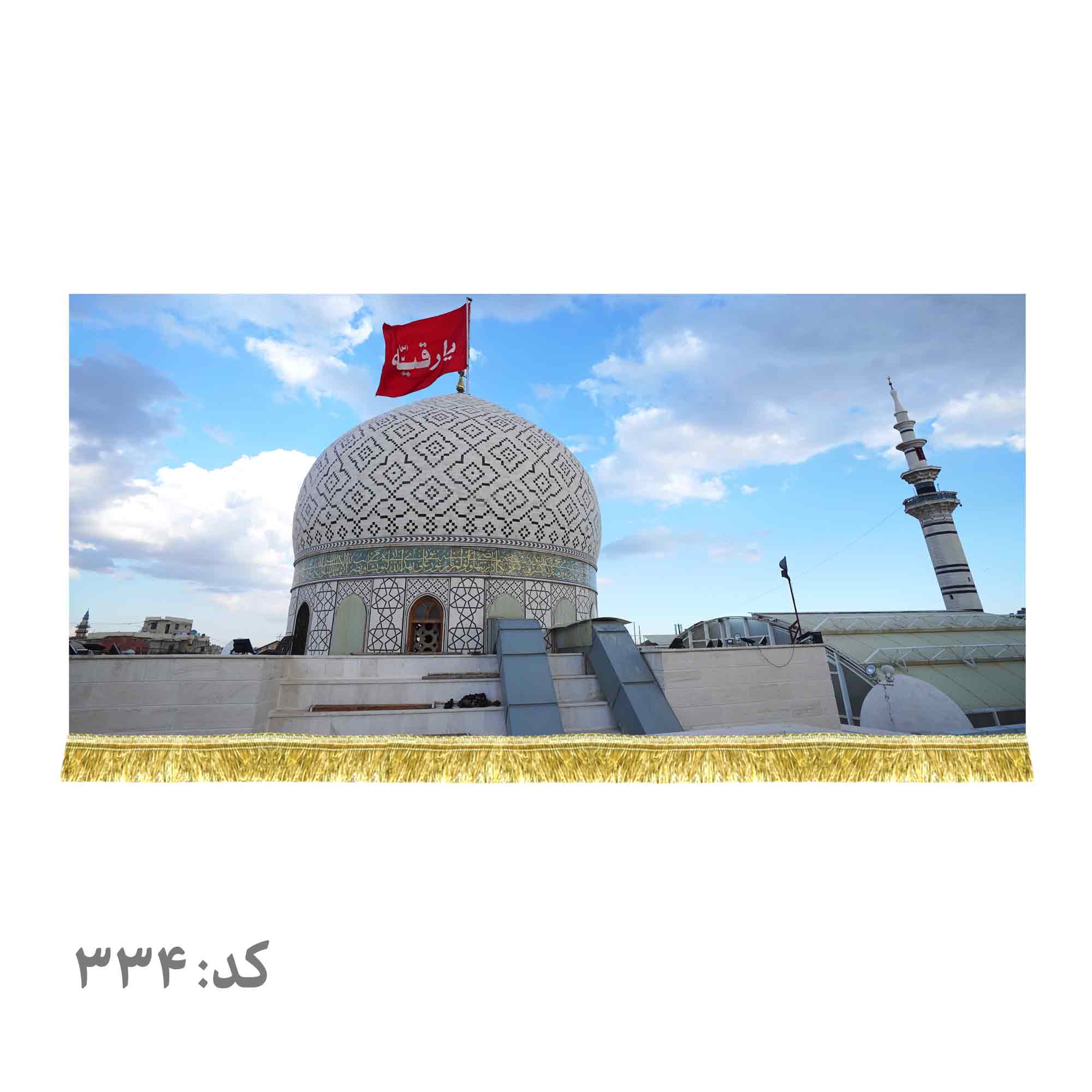 کتیبه ( دکور ) مخمل تصویر حرم حضرت رقیه بنت الحسین (ع) که با طراحی جدید در ابعاد مختلف قابل سفارش است. استفاده شده از پارچه مخمل درجه یک قابل شستشو و با بهترین کیفیت چاپ که همراه با دور دوزی ، ریشه دوزی و بندینک آویز می باشد. این محصول از طراحی تا چاپ به طور کامل در انتشارات مشهور به تولید رسیده است.