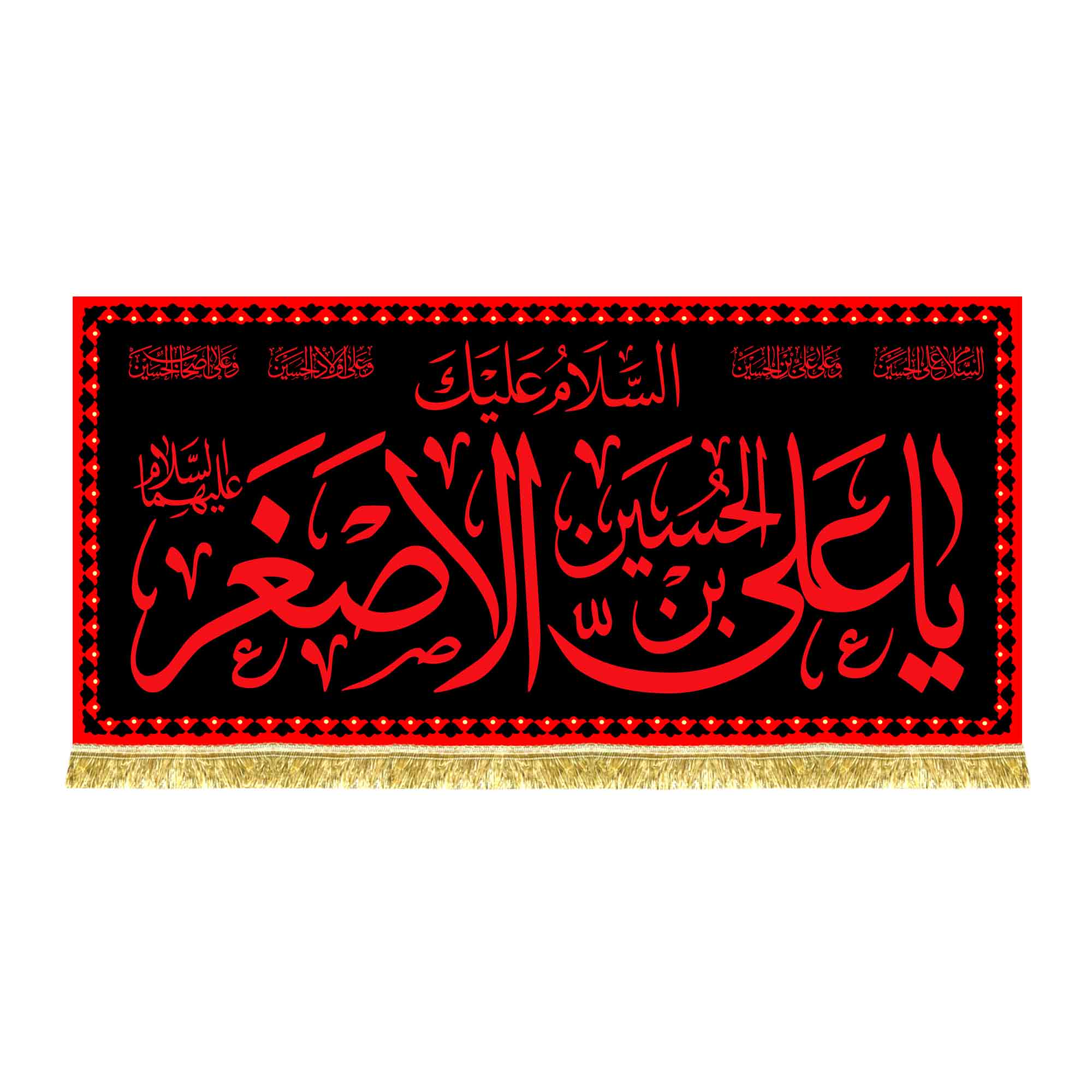 دکور ( کتیبه ) مخمل شهادت حضرت علی اصغر (ع) طرح عتبه ( حرم ) با ذکر السلام علیک یا علی بن الحسین الاصغر (ع) به همراه چهار سلام زیارت عاشورا که با طراحی جدید در ابعاد مختلف قابل سفارش است. استفاده شده از پارچه مخمل درجه یک قابل شستشو و با بهترین کیفیت چاپ که همراه با دور دوزی ، ریشه دوزی و بندینک آویز می باشد. این محصول از طراحی تا چاپ به طور کامل در انتشارات مشهور به تولید رسیده است.
