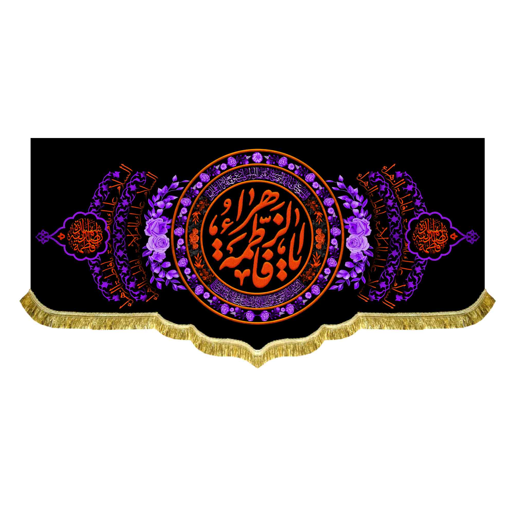 دکور ( کتیبه ) مخمل فاطمیه شهادت حضرت فاطمه زهرا (س) با ذکر یا زهرا (س) به همراه صلوات حضرت زهرا (س) که با طراحی جدید دالبر در ابعاد مختلف قابل سفارش است. استفاده شده از پارچه مخمل درجه یک قابل شستشو و با بهترین کیفیت چاپ که همراه با دور دوزی ، ریشه دوزی و بندینک آویز می باشد و در مجموعه انتشارات مشهور به تولید رسیده است.