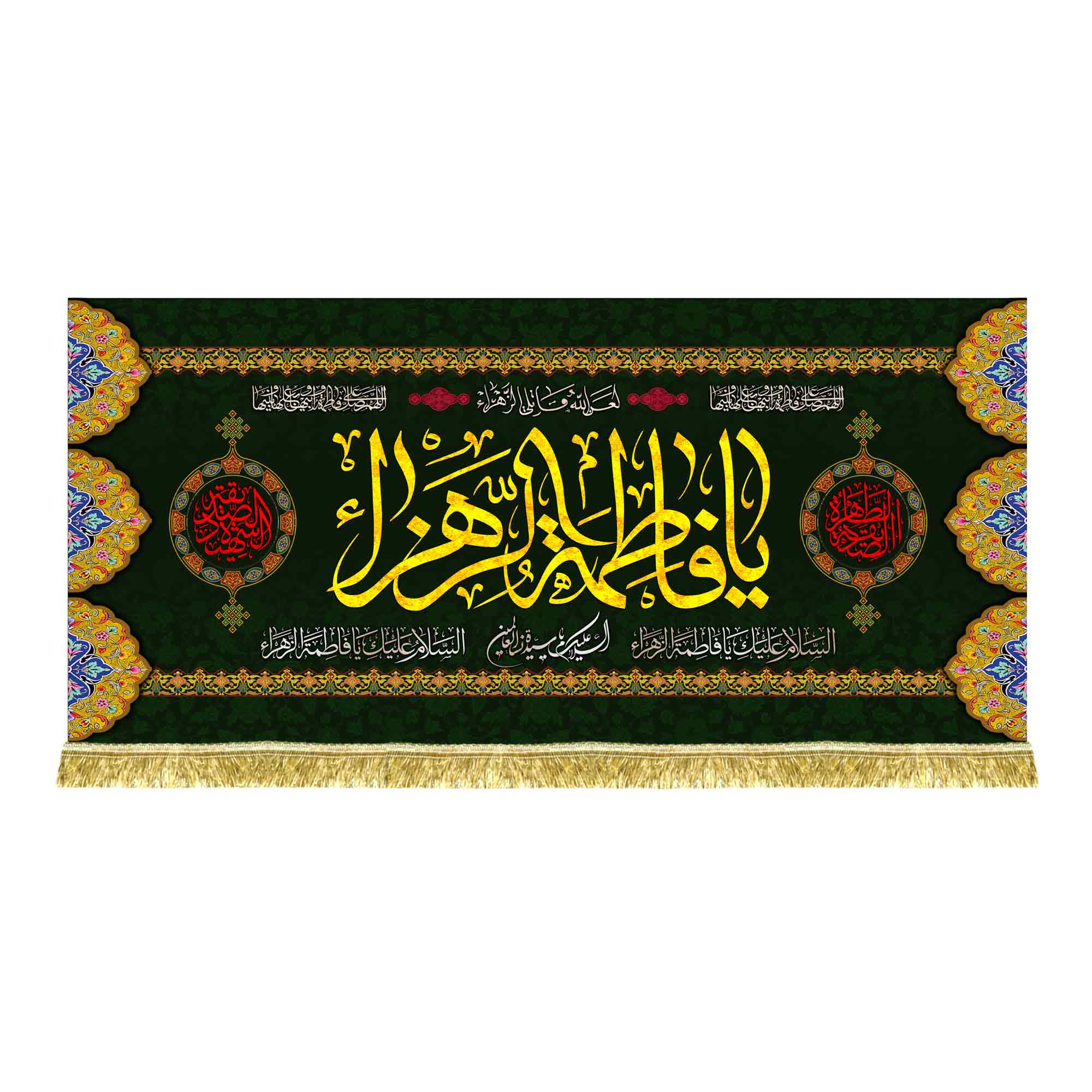 دکور ( کتیبه ) مخمل فاطمیه شهادت حضرت فاطمه زهرا (س) با ذکر السلام علیک یا فاطمه الزهرا (س) ، صلوات حضرت زهرا (س) ، السلام علیک یا سیده نساء العالمین ، لعن الله قاتلی زهرا که با طراحی جدید در ابعاد مختلف قابل سفارش است. استفاده شده از پارچه مخمل درجه یک قابل شستشو و با بهترین کیفیت چاپ که همراه با دور دوزی ، ریشه دوزی و بندینک آویز می باشد و در مجموعه انتشارات مشهور به تولید رسیده است.