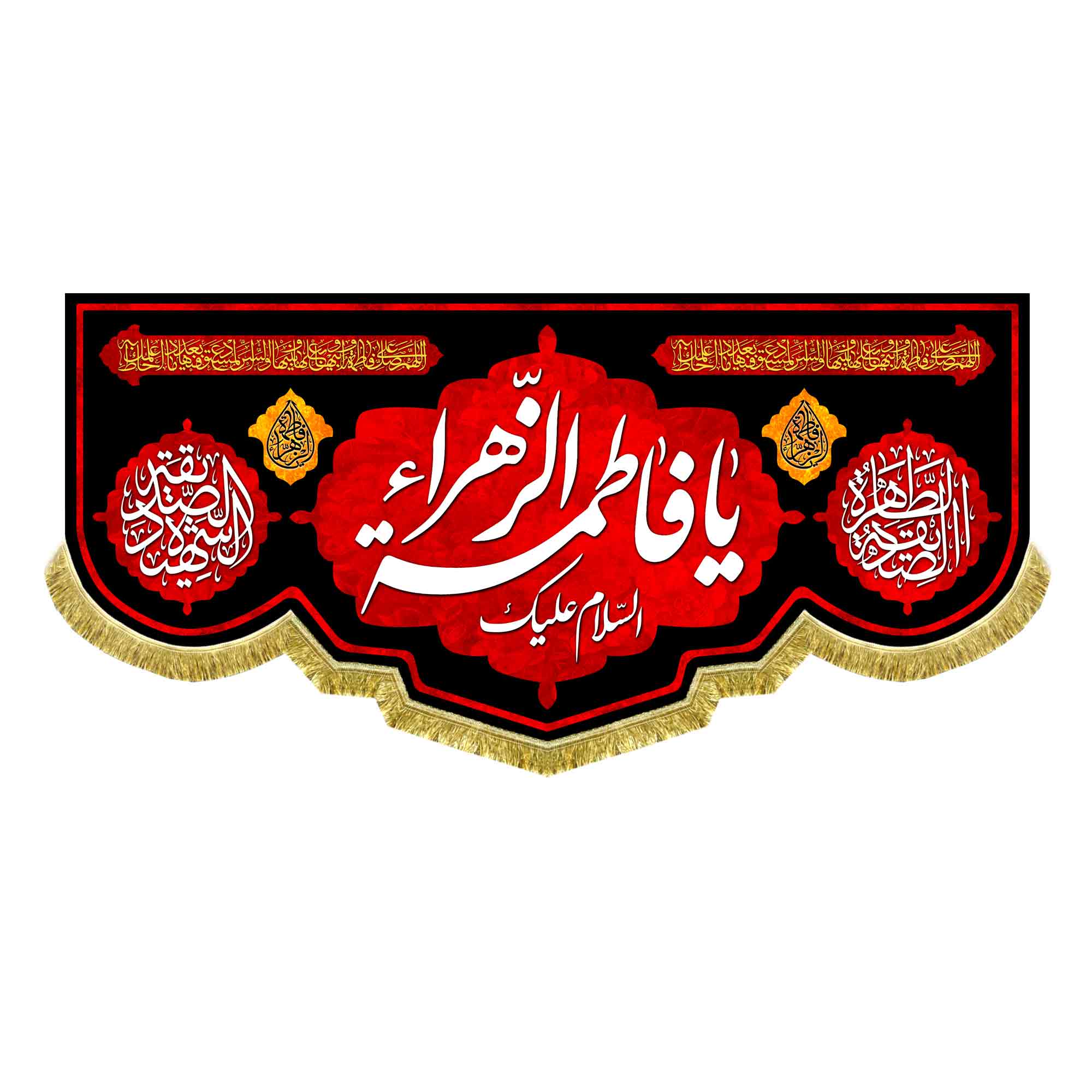 دکور ( کتیبه ) مخمل ایام فاطمیه شهادت حضرت فاطمه زهرا (س) با ذکر السلام علیک یا فاطمه الزهرا (س) به همراه صلوات حضرت زهرا (س) ، صدیقه الطاهره ، صدیقه الشهیده که با طراحی جدید در ابعاد مختلف قابل سفارش است. استفاده شده از پارچه مخمل درجه یک قابل شستشو و با بهترین کیفیت چاپ که همراه با دور دوزی ، ریشه دوزی و بندینک آویز می باشد و در مجموعه انتشارات مشهور به تولید رسیده است.