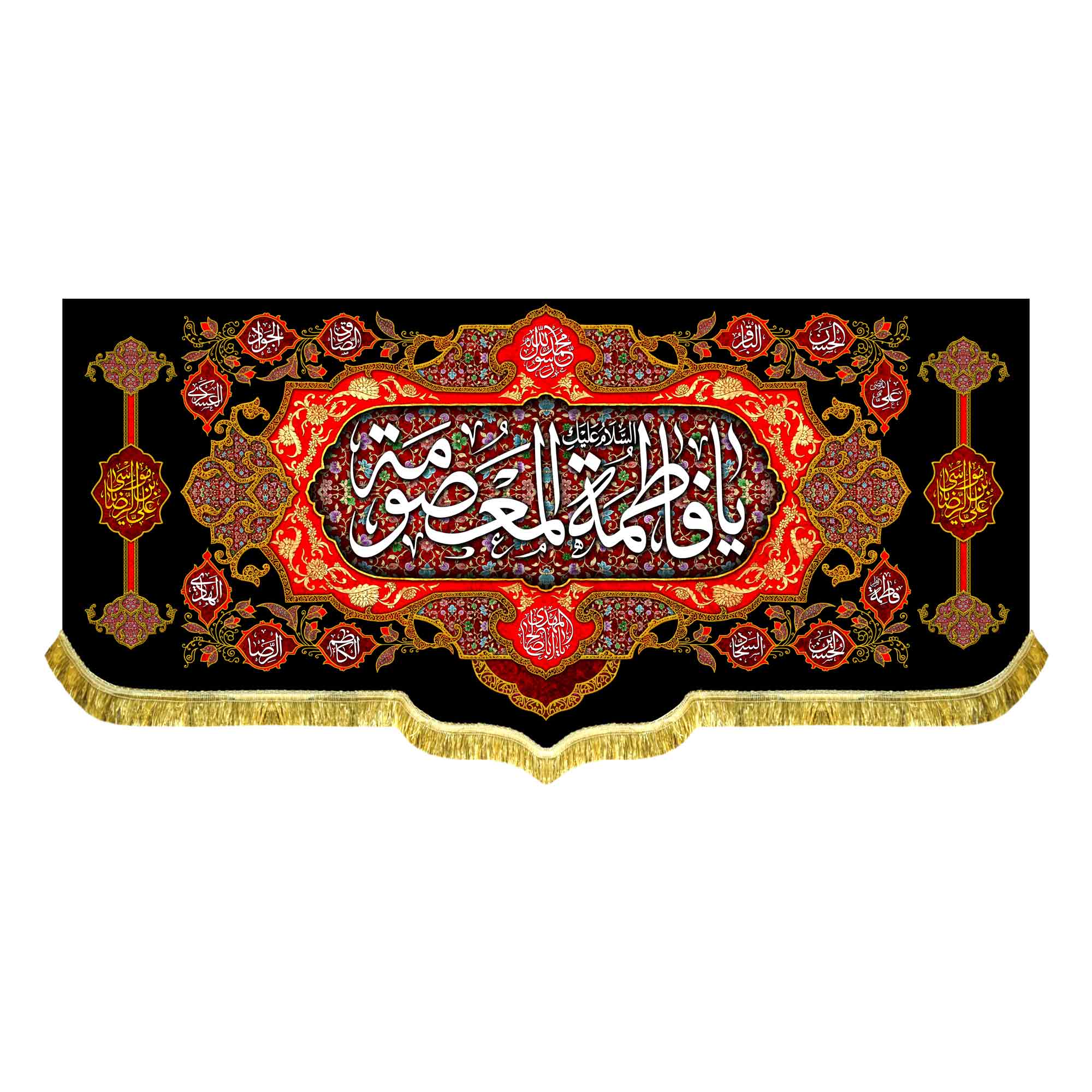 دکور ( کتیبه ) مخمل شهادت حضرت معصومه (س) با ذکر السلام علیک یا فاطمه المعصومه (س) به همراه اسامی مبارک چهارده معصوم (ع) ، علی بن موسی الرضا (ع) که با طراحی جدید در ابعاد مختلف قابل سفارش است. استفاده شده از پارچه مخمل درجه یک قابل شستشو و با بهترین کیفیت چاپ که همراه با دور دوزی ، ریشه دوزی و بندینک آویز می باشد. این محصول از طراحی تا چاپ به طور کامل در مجموعه انتشارات مشهور به تولید رسیده است.