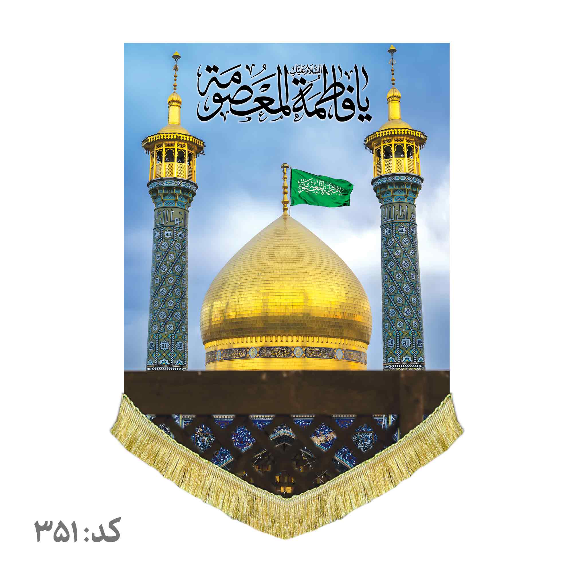 کتیبه ( پرچم ) مخمل عمودی تصویر شهر قم حرم حضرت معصومه (س) به همراه ذکر السلام علیک یا فاطمه المعصومه (س) که با طراحی جدید در ابعاد مختلف قابل سفارش است. استفاده شده از پارچه مخمل درجه یک قابل شستشو و با بهترین کیفیت چاپ که همراه با دور دوزی ، ریشه دوزی و بندینک آویز می باشد و در مجموعه انتشارات مشهور به تولید رسیده است.