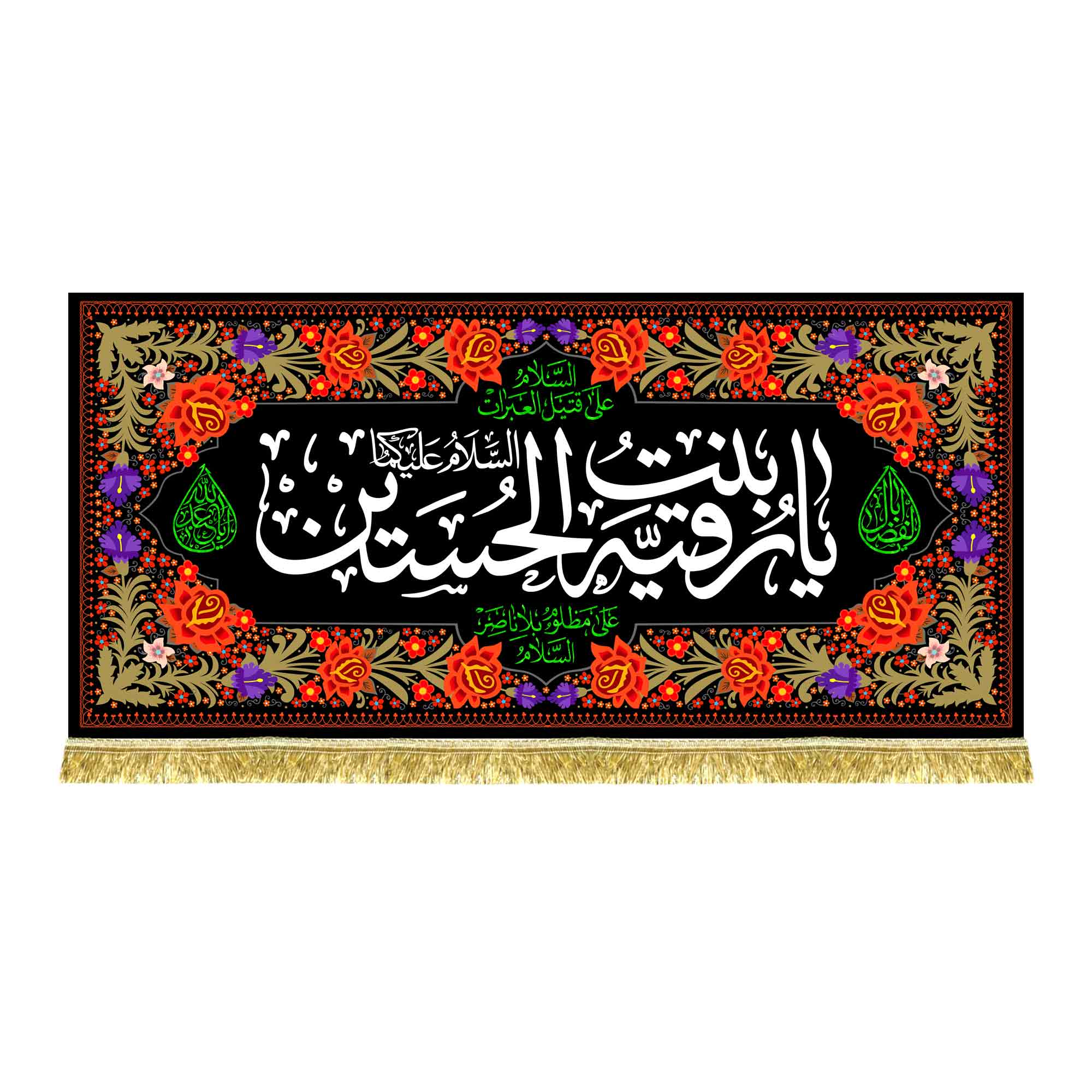 پشت منبری ( کتیبه ) مخمل محرم با ذکر السلام علیکما یا رقیه بنت الحسین (ع) که با طراحی جدید در ابعاد مختلف قابل سفارش است. استفاده شده از پارچه مخمل درجه یک قابل شستشو و با بهترین کیفیت چاپ که همراه با دور دوزی ، ریشه دوزی و بندینک آویز می باشد. این محصول از طراحی تا چاپ به طور کامل در مجموعه انتشارات مشهور به تولید رسیده است.