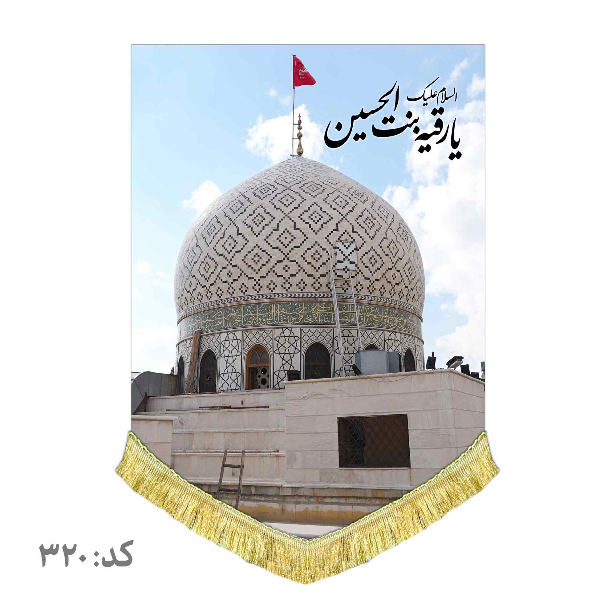کتیبه ( دکور ) مخمل عمودی تصویر حرم حضرت رقیه بنت الحسین (ع) به همراه ذکر السلام علیک یا رقیه بنت الحسین (ع) که با طراحی جدید در ابعاد مختلف قابل سفارش است. استفاده شده از پارچه مخمل درجه یک قابل شستشو و با بهترین کیفیت چاپ که همراه با دور دوزی ، ریشه دوزی و بندینک آویز می باشد. این محصول از طراحی تا چاپ به طور کامل در انتشارات مشهور به تولید رسیده است.