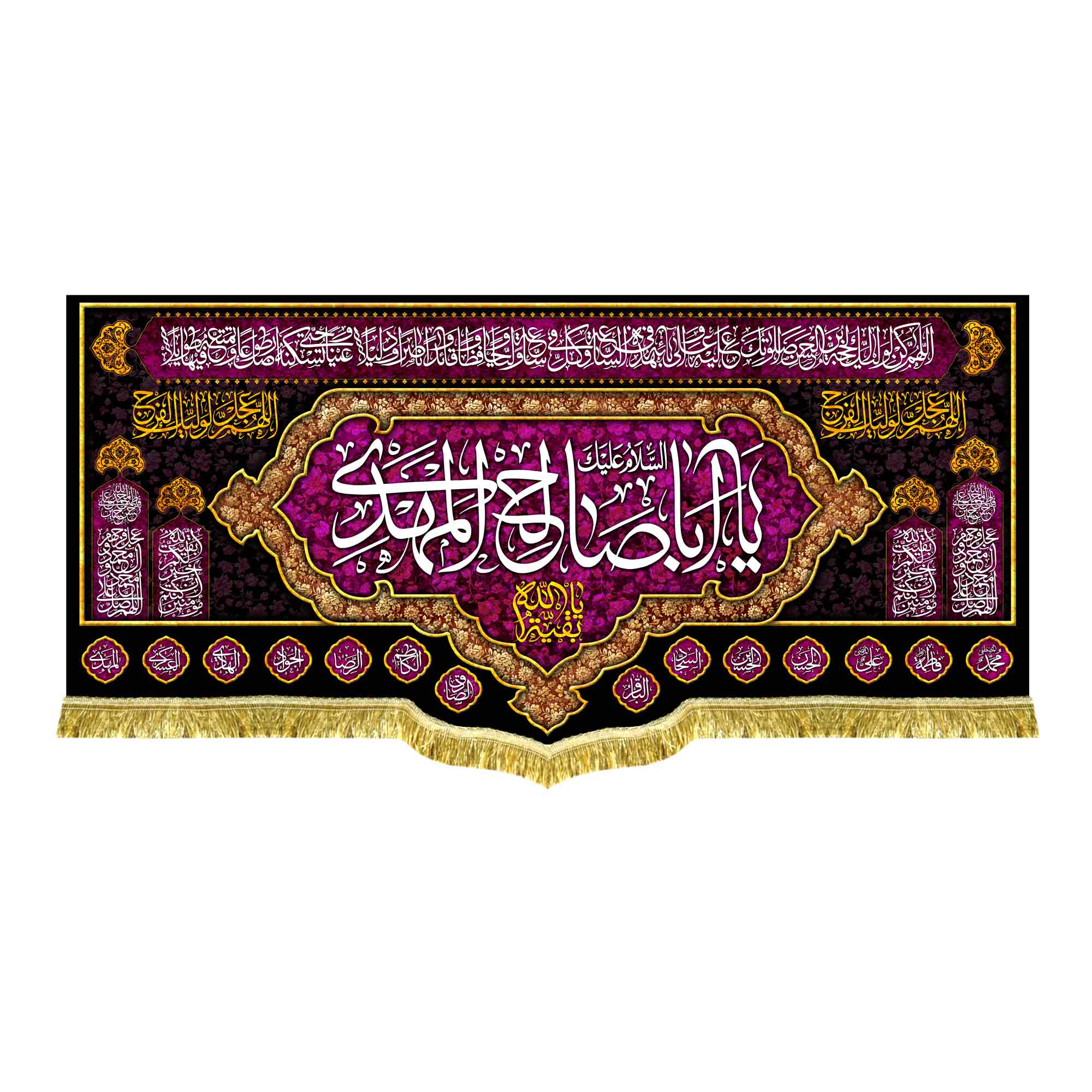دکور ( کتیبه ) مخمل شهادتی یا اباصالح المهدی (عج) با ذکر السلام علیک یا اباصالح المهدی (عج) به همراه اسامی مبارک چهارده معصوم (ع) ، دعای سلامتی امام زمان (عج) ، اللهم عجل لولیک الفرج ، صلوات که با طراحی جدید در ابعاد مختلف قابل سفارش است. استفاده شده از پارچه مخمل درجه یک قابل شستشو و با بهترین کیفیت چاپ که همراه با دور دوزی ، ریشه دوزی و بندینک آویز می باشد. این محصول از طراحی تا چاپ به طور کامل در انتشارات مشهور به تولید رسیده است.