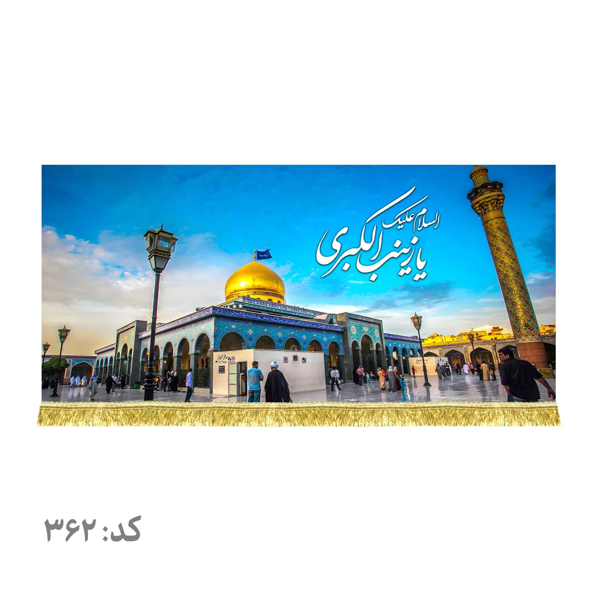 کتیبه ( دکور ) مخمل تصویر حرم حضرت زینب (س) به همراه ذکر السلام علیک یا زینب کبری (س) که با طراحی جدید در ابعاد مختلف قابل سفارش است. استفاده شده از پارچه مخمل درجه یک قابل شستشو و با بهترین کیفیت چاپ که همراه با دور دوزی ، ریشه دوزی و بندینک آویز می باشد. این محصول از طراحی تا چاپ به طور کامل در انتشارات مشهور به تولید رسیده است.