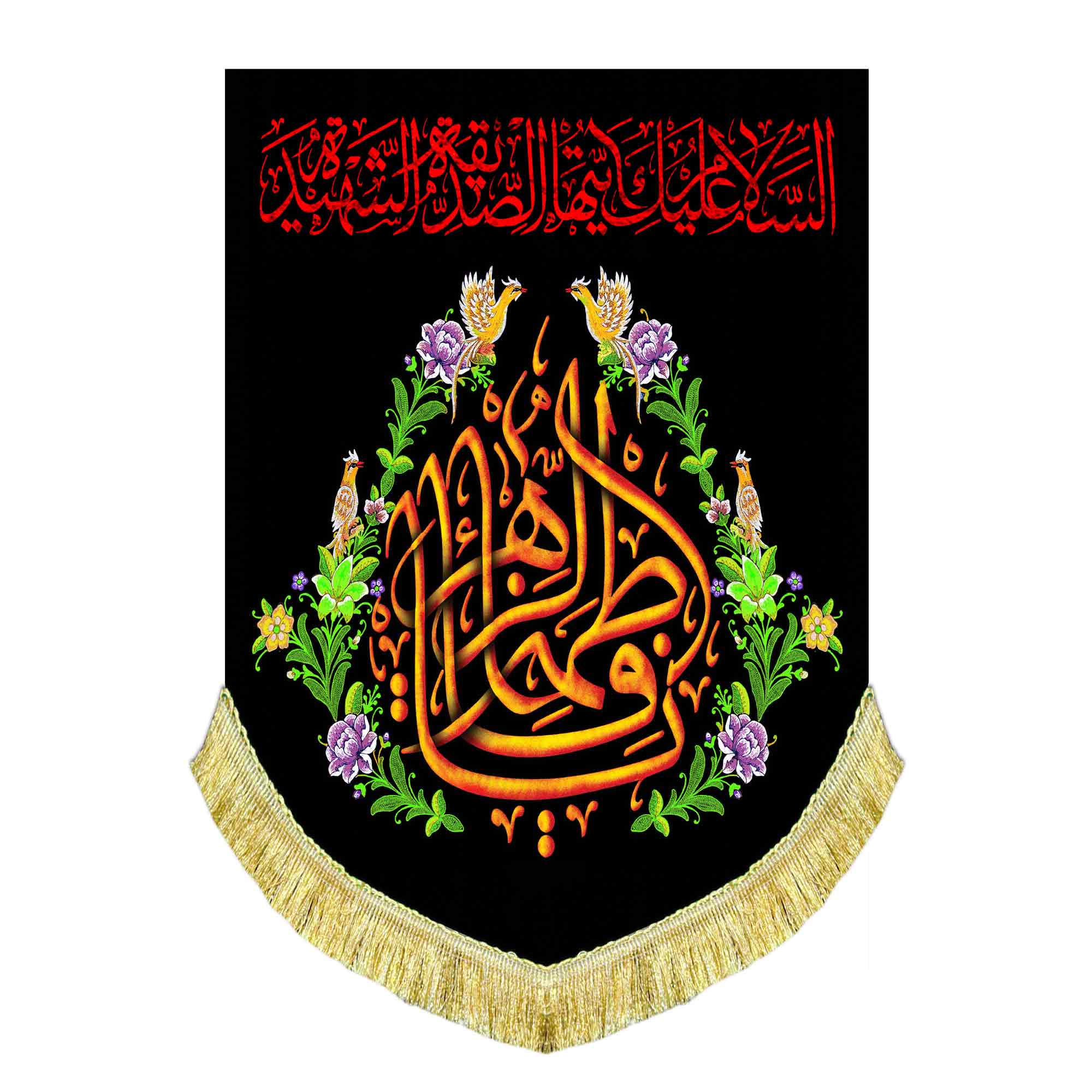 کتیبه ( دکور ) آویز مخمل فاطمیه شهادت حضرت فاطمه زهرا (س) با ذکر یا فاطمه الزهرا (س) ، السلام علیک ایتها الصدیقه الشهیده که با طراحی جدید در ابعاد مختلف قابل سفارش است. استفاده شده از پارچه مخمل درجه یک قابل شستشو و با بهترین کیفیت چاپ که همراه با دور دوزی ، ریشه دوزی و بندینک آویز می باشد و در مجموعه انتشارات مشهور به تولید رسیده است.