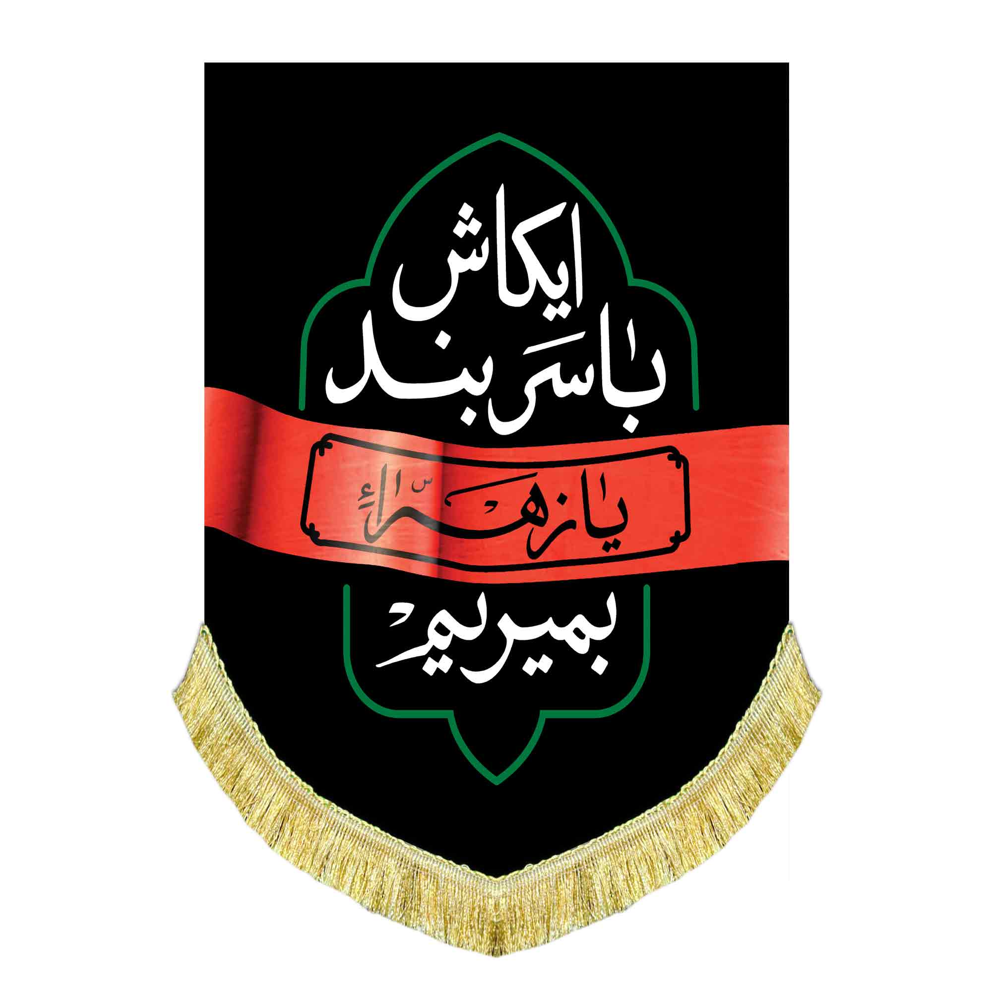 کتیبه ( دکور ) آویز مخمل فاطمیه شهادت حضرت فاطمه زهرا (س) با ذکر ای کاش با سربند یا زهرا بمیریم که با طراحی جدید در ابعاد مختلف قابل سفارش است. استفاده شده از پارچه مخمل درجه یک قابل شستشو و با بهترین کیفیت چاپ که همراه با دور دوزی ، ریشه دوزی و بندینک آویز می باشد و در مجموعه انتشارات مشهور به تولید رسیده است.