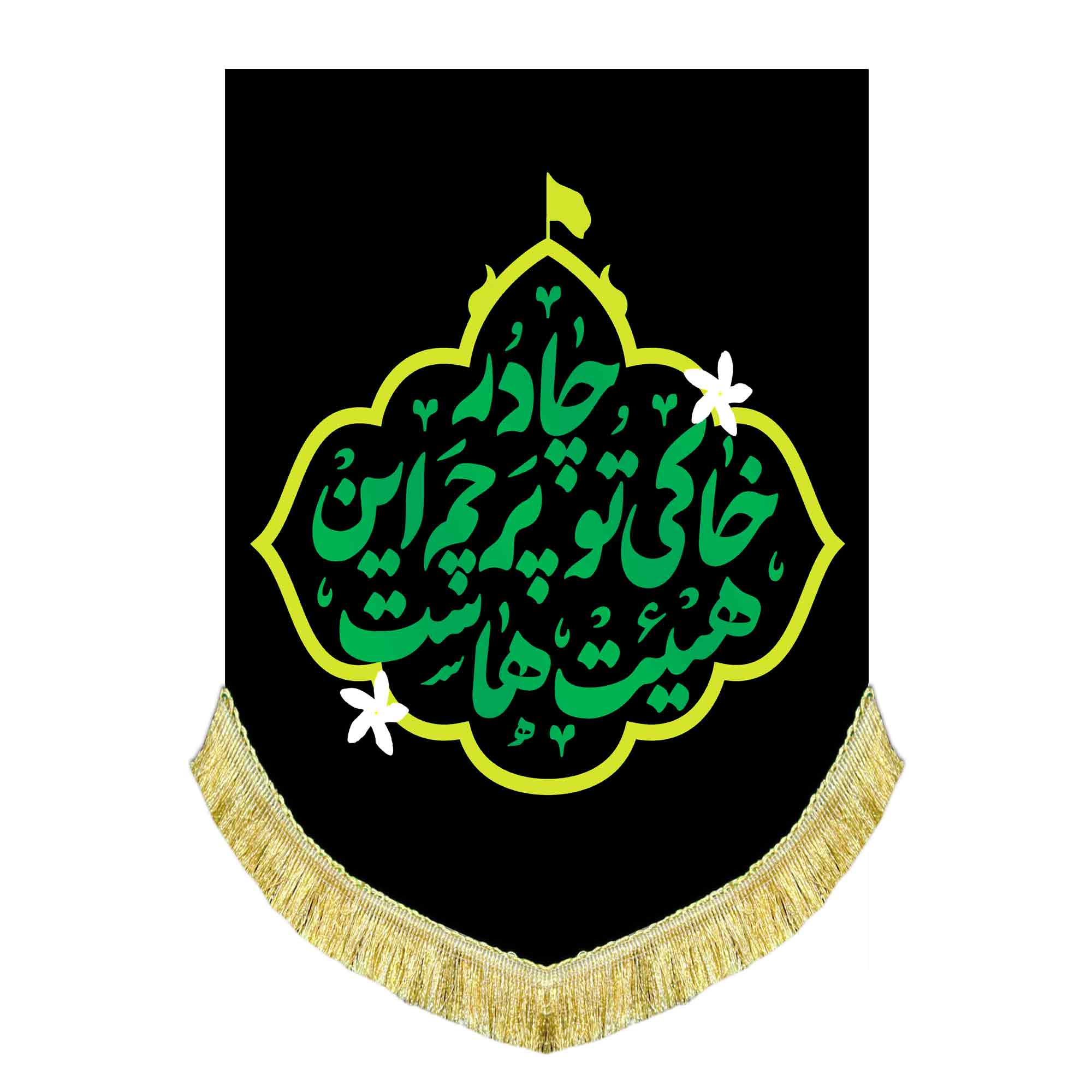 کتیبه ( دکور ) آویز مخمل فاطمیه چادر خاکی تو پرچم این هیئت هاست شهادت حضرت فاطمه زهرا (س) که با طراحی جدید در ابعاد مختلف قابل سفارش است. استفاده شده از پارچه مخمل درجه یک قابل شستشو و با بهترین کیفیت چاپ که همراه با دور دوزی ، ریشه دوزی و بندینک آویز می باشد و در مجموعه انتشارات مشهور به تولید رسیده است.