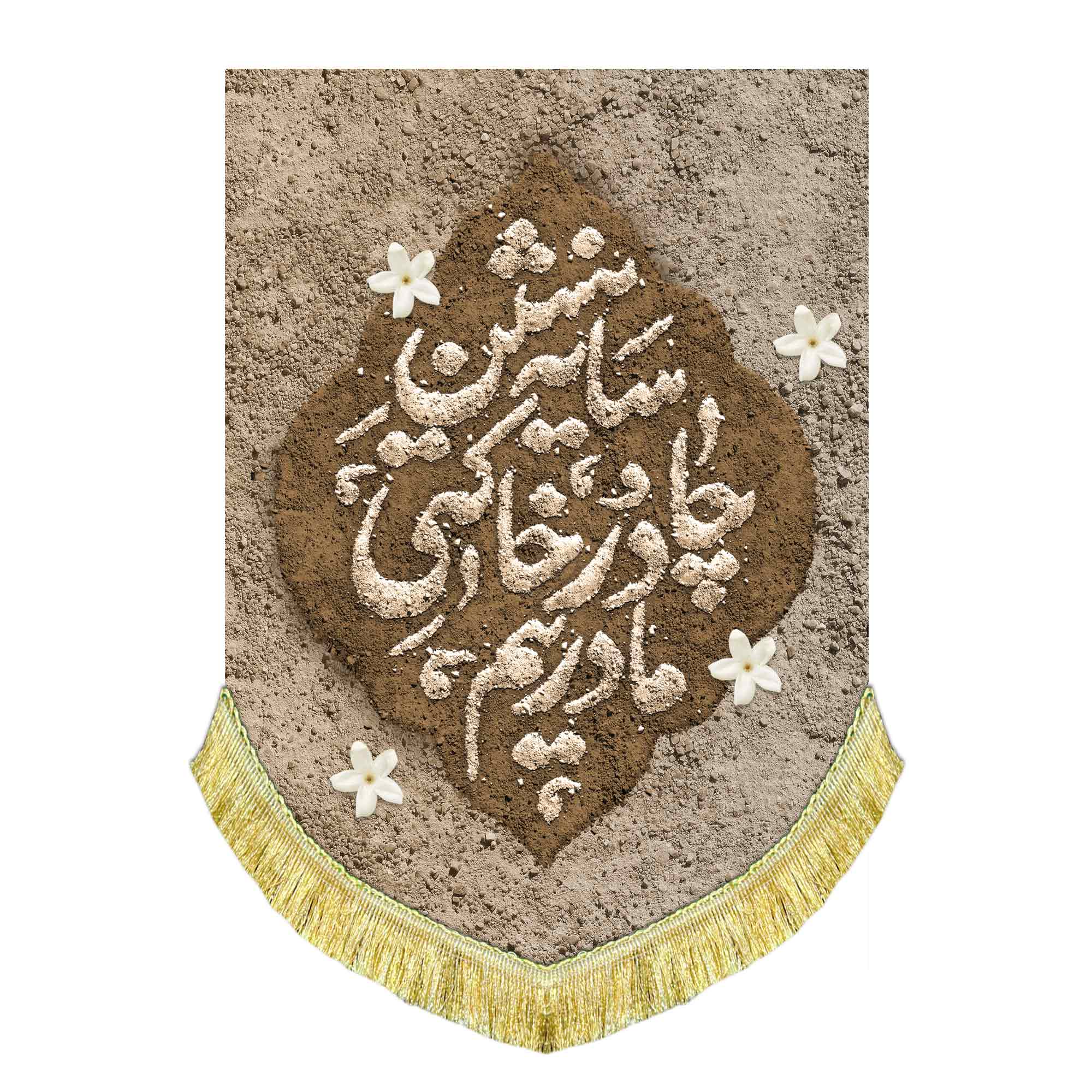 کتیبه ( دکور ) آویز مخمل فاطمیه سایه نشین چادر خاکی مادریم شهادت حضرت فاطمه زهرا (س) که با طراحی جدید بر روی خاک در ابعاد مختلف قابل سفارش است. استفاده شده از پارچه مخمل درجه یک قابل شستشو و با بهترین کیفیت چاپ که همراه با دور دوزی ، ریشه دوزی و بندینک آویز می باشد و در مجموعه انتشارات مشهور به تولید رسیده است.