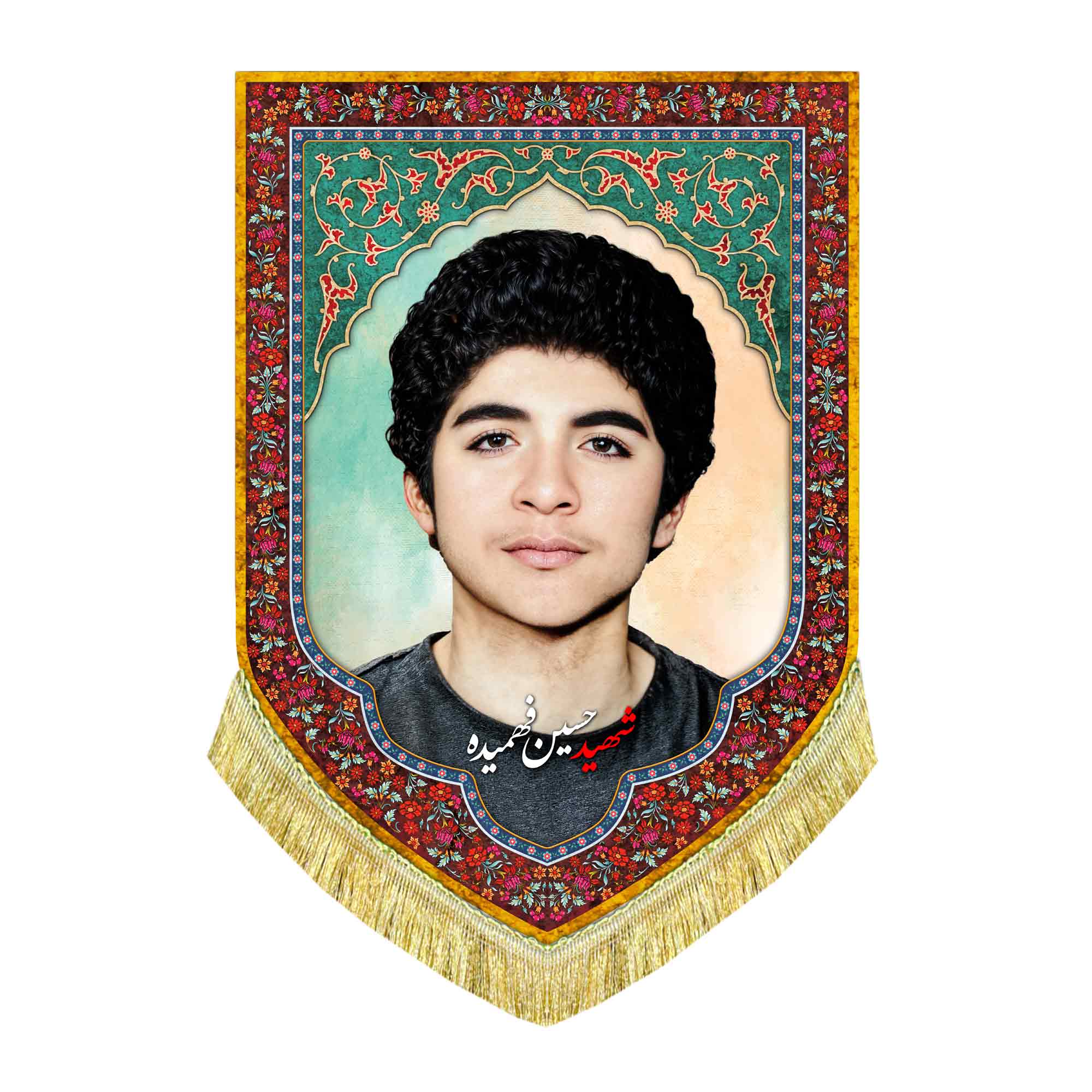 کتیبه ( دکور ) مخمل عمودی شهید حسین فهمیده که با طراحی جدید در ابعاد مختلف قابل سفارش است. استفاده شده از پارچه مخمل درجه یک قابل شستشو و با بهترین کیفیت چاپ که همراه با دور دوزی ، ریشه دوزی و بندینک آویز می باشد و در مجموعه انتشارات مشهور به تولید رسیده است.