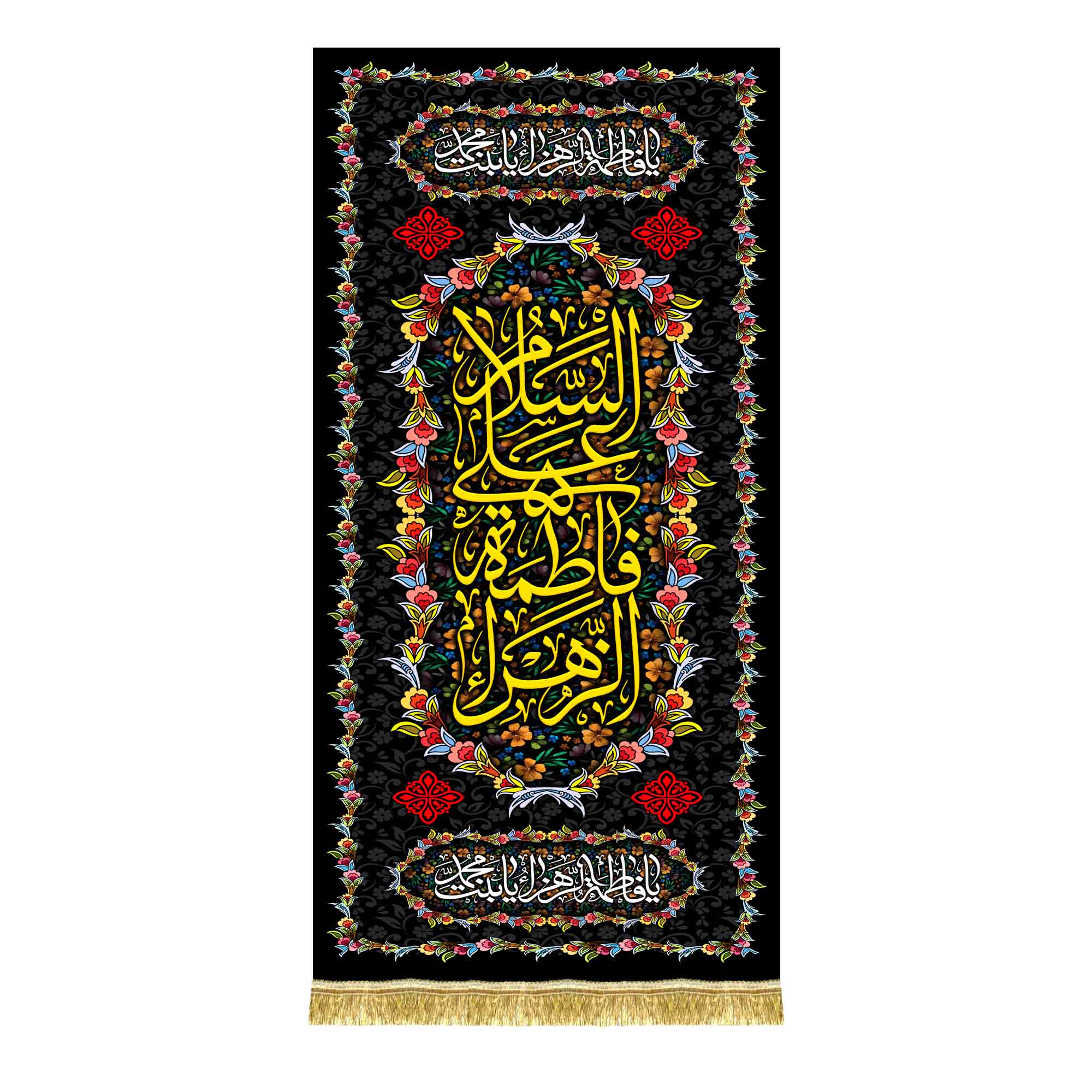 کتیبه ( دکور ) عمودی مخمل فاطمیه شهادت حضرت فاطمه زهرا (س) با ذکر السلام علیک یا فاطمه الزهرا (س) ، یا فاطمه الزهرا یا بنت محمد که با طراحی جدید در ابعاد مختلف قابل سفارش است. استفاده شده از پارچه مخمل درجه یک قابل شستشو و با بهترین کیفیت چاپ که همراه با دور دوزی ، ریشه دوزی و بندینک آویز می باشد و در مجموعه انتشارات مشهور به تولید رسیده است.
