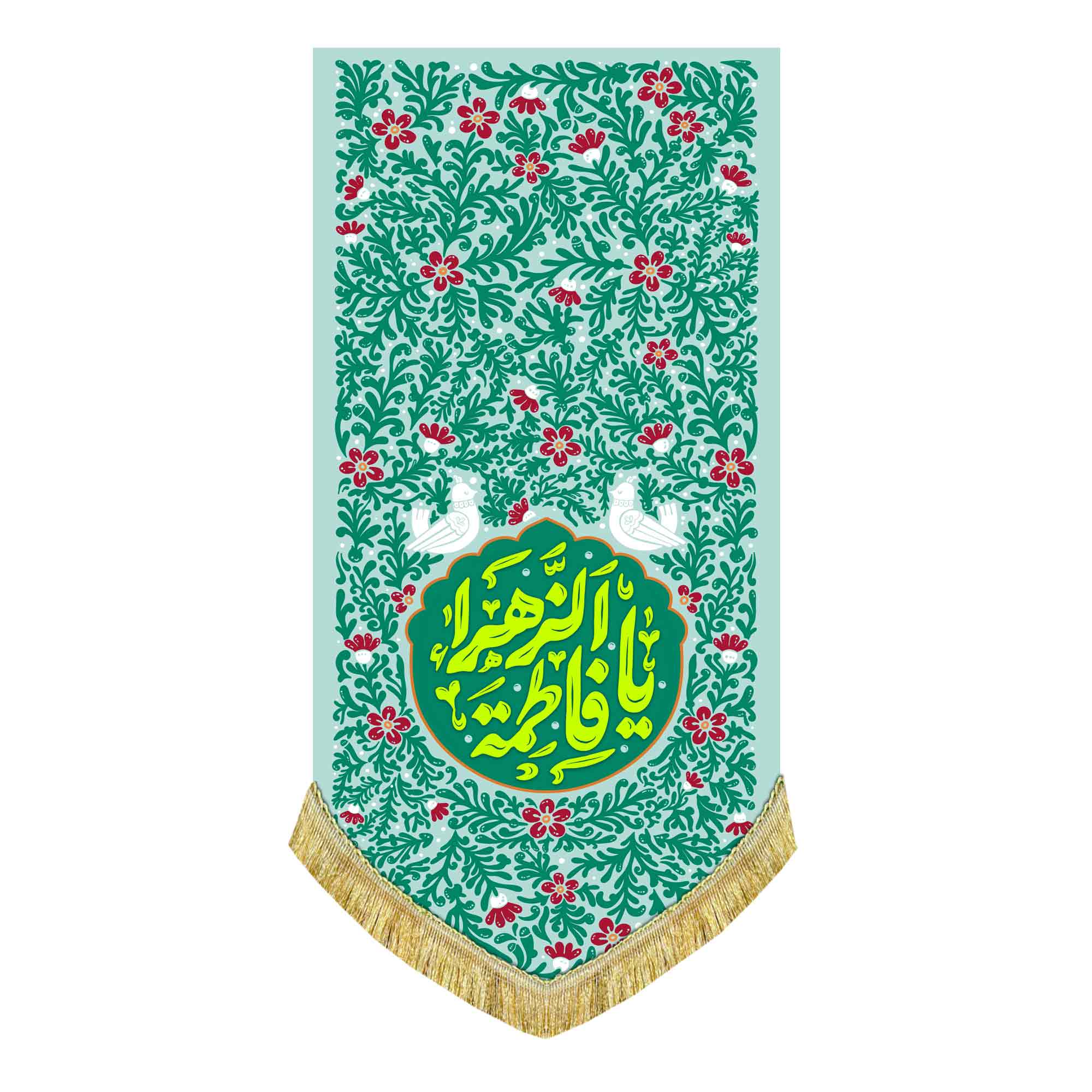 کتیبه ( دکور ) مخمل عمودی ولادت حضرت فاطمه زهرا (س) با ذکر یا فاطمه زهرا (س) که با طراحی جدید در ابعاد مختلف قابل سفارش است. استفاده شده از پارچه مخمل درجه یک قابل شستشو و با بهترین کیفیت چاپ که همراه با دور دوزی ، ریشه دوزی و بندینک آویز می باشد و در مجموعه انتشارات مشهور به تولید رسیده است.